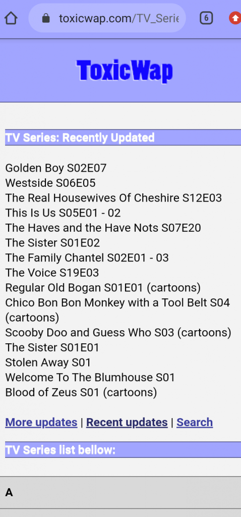 Immediately you are redirected to Toxicwap’s TV Series section, you will come across a section at the top with all the recently added to TV shows and their various episodes. You might just find the show you wish to download here, if not, check out the steps below.